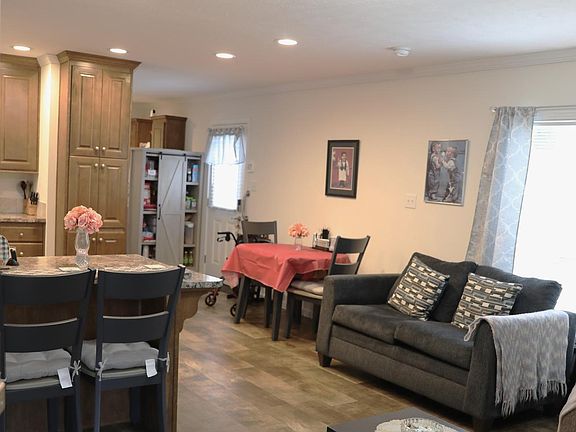 Discover this lovely 1-bedroom, 1-bathroom cottage, just 7 years young, designed for comfortable living. Perfectly modified for wheelchair accessibility, it features a convenient ramp and spacious doorways for easy mobility. Thoughtfully designed open floorplan, offering comfortable and welcoming atmosphere. Key Features: Huge walk-in shower accommodates a wheelchair. Oversized windows fill the space with plenty of natural light. Enjoy stylish cabinets for added functionality in the kitchen and bathroom. Luxury vinyl plank (LVP) throughout for a modern, low-maintenance finish. Includes a shed on the property for additional storage. All utilities managed by the Town of Clayton, except for water, which is Artesian. Buyers must be approved by park management; the sale is contingent on buyer approval. Home is being sold as is.