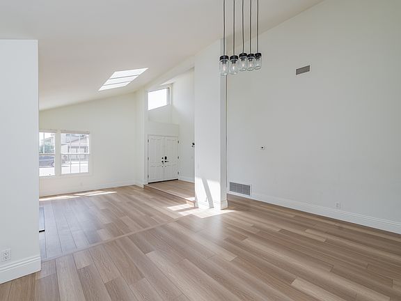 Welcome to this beautifully renovated Single-story residence nestled in the gated Windstream community. This stunning home sits on a spacious 5,400 sqft lot, offering 1,971 sqft of living space with 4 bedrooms and 2.5 bathrooms, perfect for comfortable living and entertaining. Gorgeous wood floors flow throughout the common areas, while natural light pours in through skylights, making each room warm and inviting. The kitchen, open to the family room and breakfast nook, features a full set of stainless steel appliances, a custom central island, cabinetry, and soapstone countertops. The master suite includes a walk-in closet with custom organizers and a fully renovated bathroom with a walk-in shower, dual sinks, and quartz countertops. Two additional bedrooms feature plantation shutters and will be upgraded with new windows, while the fourth room, with wood flooring, can serve as an extra bedroom, office, or media room equipped with a Bose home theater surround sound system. Enjoy the convenience of top-rated schools Santiago Hills Elementary, Sierra Vista Middle, and Northwood High just minutes away, as well as easy access to Northwood Town Center, Northpark Plaza, Hicks Canyon Trail, and community amenities.