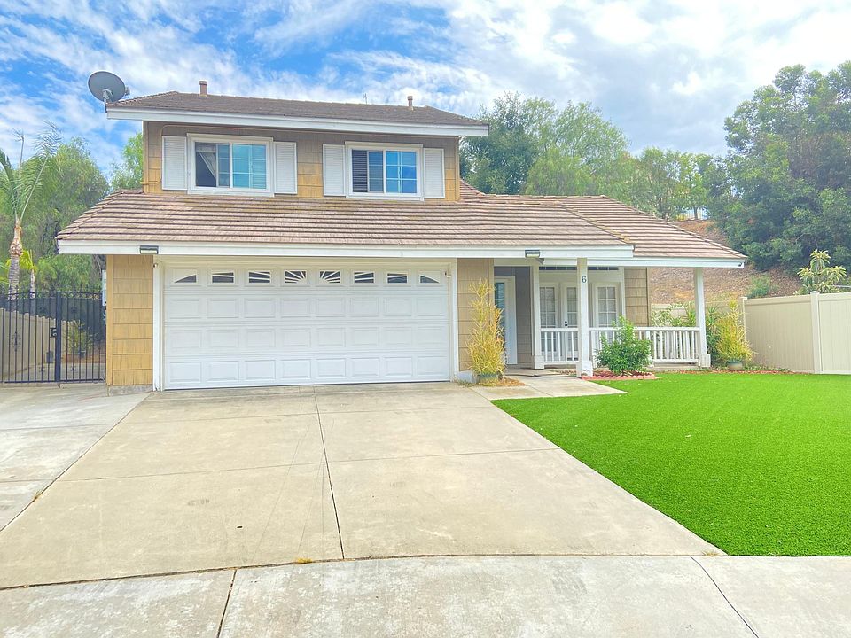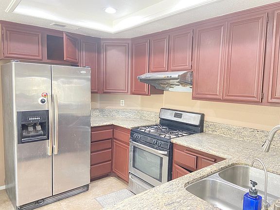 Charming 3-bedroom, 2.5-bath home in a serene Phillips Ranch cul-de-sac. Cute country style porch and new artificial grass as you approach the home. Freshly painted interior and new vinyl flooring throughout the home. Formal Living and dining room boasts high ceilings as you enter the home. The updated kitchen shines with new fixture appliances, granite countertops, breakfast counter and breakfast nook. The family room features a cozy fireplace and sliding door to backyard. Laundry room and Half bath on the first floor for convenience. Primary bedroom includes a spacious walk-in closet, bathtub/shower, and double sinks. Each bedroom is spacious and boasts high ceilings. Each bathroom has been upgraded before with granite countertops. Spacious 2-car garage. Enjoy RV parking, a large backyard with fruit trees. Refrigerator included. No Utilities included! Call first if you have a pet(s) to verify! Target Move in around September 1st.