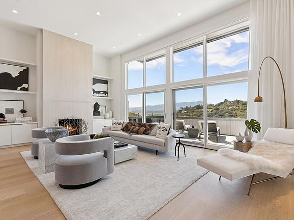 Welcome to 6 Red Hill Circle, a fully reimagined 3BR/3BA condo where design, comfort & location converge. Renovated in 2019 under the vision of RH's Senior Designer, Carlotta Orta & Adamas Bldrs, blending modern elegance w/ timeless California style. The dramatic living room features soaring ceilings, a sleek fireplace & walls of glass framing Bay & Mt. Tam views. A slider opens to an expansive deck, ideal for dining al fresco or entertaining w/ a stunning backdrop. The chef's kitchen showcases a marble waterfall island, Sub-Zero fridge, Wolf induction cooktop, Bosch dishwasher, wine fridge & prep sink. A cozy great room w/ fireplace, a statement dining room & St. Laurent marble bath complete the main living level. Wide-plank oak floors, radiant heating & multiple balconies add warmth & flow. The primary suite is a serene retreat w/ a spa-like bath, soaking tub, glass shower, dual vanities, Juliet view balcony & AC. Two additional bedrooms, chic bath & flexible layout provide space for guests, family or office. Features include a laundry room w/ custom cabinetry & wine storage, a large storage room, owned solar, new systems & 2-car garage. Close to downtown Tiburon, the ferry, stylish boutiques, SF & Corinthian yacht clubs, gourmet restaurants & distinguished Tiburon schools