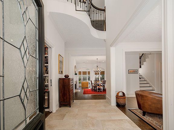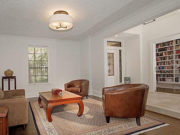 Spectacular Jeff Paul custom home on nearly an acre lot in Grogan's Point! Highlights of this home include an extra deep 3 car garage with epoxy floor + 3 car porte-cochere, 3/4" oak hardwood flooring, Plantation shutters, high baseboards, transom windows and detailed trim work. As you enter, to your left you'll find a study lined in book shelves and a pocket door for privacy. On your right is a formal/flex space. The dining room features a gas log fireplace and opens to the magnificent sunroom. Island kitchen with custom soft close cabinets and drawers, double oven, gas cooktop and adjacent bar with beverage fridge; owner's retreat down has a gorgeous remodeled bath and 2 walk-in closets; game room with French doors and 3 bedrooms with en-suite baths up; The private yard provides a serene, park-like setting and backs to a green space. With 2 covered patios, an island with bar seating for al fresco dining, outdoor kitchen, fireplace, Pebble-Tec pool and spa, you'll never want to leave!