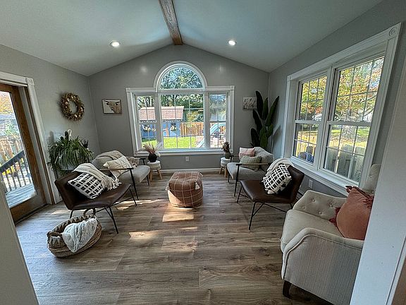 Beautiful home in great neighborhood. This home has 4 bedrooms, 2 full baths, living room, dining room, kitchen, Sun/Sitting room with cathedral ceiling leading to a backyard oasis fully fenced in with a privacy fence with a heated inground swimming pool, sit by a nice fire and relax, lots of space for outdoor furniture, large shed. Complete finished family room downstairs, den/office space , large laundry room, theater/movie room, finished attached garage currently used as gym. Close to beautiful walking/bike trails. If you are looking for a great home ready to move in fully updated come take a look!
