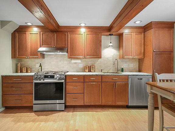 - Features: Beamed Ceilings, Flooring - Hardwood, Window(s) - Bay/Bow/Box, Dining Area, Countertops - Stone/Granite/Solid, Exterior Access, Recessed Lighting, Stainless Steel Appliances, Gas Stove