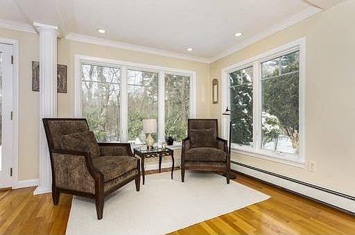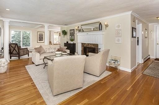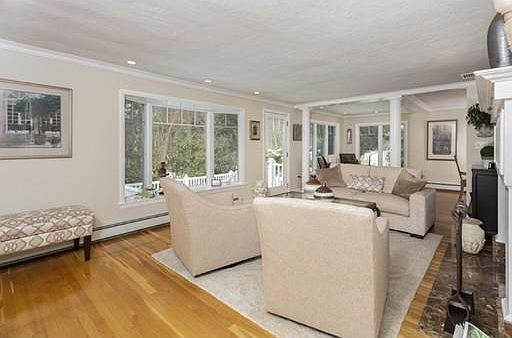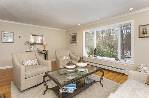 Well maintained seven room multi-level home located in great Lynnfield location. Half mile to town's center amenities. Two full baths and three bedrooms. Foyer leads to updated kitchen with newer appliances. Gas fireplace in large bright living room, built in TV over mantel with easy access to backyard deck and patio. Gleaming hardwood floors compliment living room to dining room with featured dimmable recessed lighting to achieve the right ambiance. Second level has newer carpeting throughout and offers easy access to pull down attic storage. large master bedroom with master bath and two guest bedrooms with full bath. Partially finished lower level offers newly carpeted family room for movies and sports. Nearby large cedar closet, washer, dryer and organized storage area with walk out to back yard. Home features central air, updated roof, heating, windows, 200 amp electric, irrigation system, large two car garage with newer overhead doors.