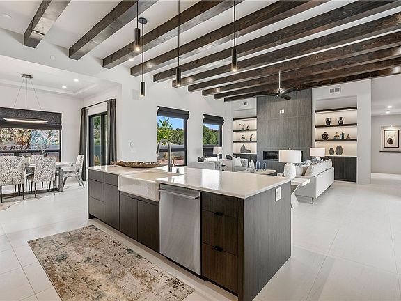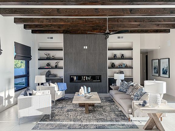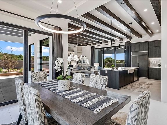 Experience contemporary living in this stunning 2023 home built by David Cordova. Nestled on 2.64 acres in Sundance Ridge. Spanning approximately 2,775 sq. ft., this 3-bedroom, 3-bathroom residence offers seclusion and privacy while being just a 17-minute drive to the Santa Fe Plaza. The living room boasts high ceilings, a beautiful accent wall with a gas fireplace, and built-in shelves, creating a refined yet cozy ambiance. Step outside to take in breathtaking sunset views over the Jemez Mountains from the covered portals and walled outdoor spaces. Entertain with ease in the outdoor kitchen, while the large walk-in butler’s pantry with a second refrigerator makes hosting large gatherings a breeze. Or unwind amid the tranquil setting, surrounded by mature trees and nature. Designed for seamless indoor-outdoor living, the primary suite features large sliding doors that open to a private patio, perfect for enjoying the natural surroundings. A gas fireplace with a striking accent wall adds warmth and elegance to the space. A bonus feature is the radiant floor heated garage. More than $100K invested in upgrades—including landscaping, yard walls, garage floor finish, and a custom fountain—makes this better than new. The home has never been occupied and is truly a turn-key property. This exquisite home blends modern comfort with the serenity of Santa Fe’s landscape—don’t miss the chance to make it yours.
