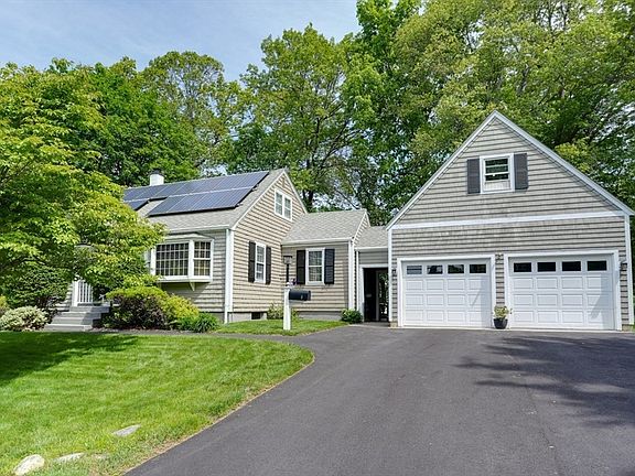 4-bedroom, 2-bath Cape nestled on a sunny corner lot in a prime Marlborough location. 2 bedrooms & a full bath on each level, the layout is perfect for multi-generational living, guest space, or remote work. Kitchen fully renovated in 2021 with Thomasville cabinetry, quartz countertops, a tile backsplash & a new gas range, ideal for everyday living & entertaining. Both bathrooms have been refreshed, leased solar panels. Recent updates include: Furnace (2014), A/C unit (2014), Blown-in insulation (2013), Hot water heater (2022), Roof & exterior paint (2009), Detached garage with second-story storage (2009), Driveway repaved (2024). Central heating & cooling with natural gas, Hardwood & vinyl flooring, Unfinished walk-out basement w/utility sink, Washer/dryer. 3-season porch w/ operable windows, 2-car, 2-story garage, upper level offers flexible use a home gym, hobby area, guest space, or storage. Near schools, hospital, AART Rail Trail & highways. Roof: Asphalt, Gable or hip.