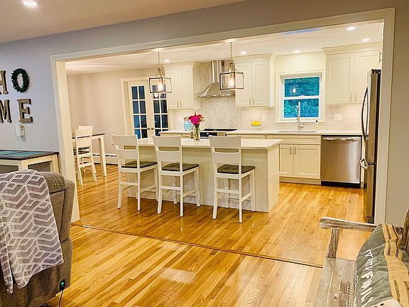 This is a well maintained Ranch Style home with 2 car garage under in a desirable neighborhood and close to all major routes. Hardware floors throughout with 2 fireplaces and a finished basement that has a separate laundry room and bathroom. The home has a 16 x 32 In-ground pool with stamped concrete and deck. In 2007- Triple Pane Windows were installed and Attic re-insulated. In 2013 - A new front door was installed, a new roof was installed, and chimney updated, new Buderus Boiler and water heater installed and basement refinished. 2020- new trex deck 2021- new kitchen and remodel of main living space