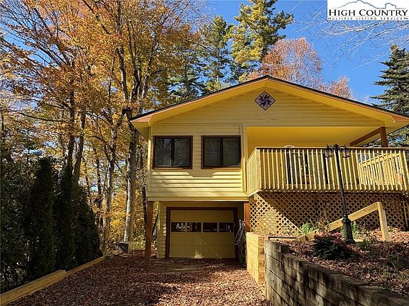 Fabulously located home in the resort community of Linville Land Harbor. This two bedroom, two bath home has been updated nicely. MORE PICTURES COMING. Kitchen has granite countertops, stainless appliances and custom cabintery. Both full baths have walk in showers and updated vanities. Kitchen flows into dining area then onto the living room where the new doors with built in blinds open up on to a covered porch. New open deck addition off the covered porch gives you views of the golf course that is just across the way. Off the dining area you will find a sunny room with many possibilities..currently a media room. Basement has laundry, a third full bath, room to build another bedroom or workout area and one car garage. Multiple parking areas including one allowing level entry to main level of home via a ramp. Very nice home ready for you to enjoy all that Land Harbor offers and potential to grow. Land Harbor POA Fees includes water, sewer, trash pickup, cable, internet and common area maintenance. Amenities abound including seasonal heated outdoor swimming pool, hiking trails, lake for boating & swimming, dog park, pickleball, tennis, golf and so much more!!