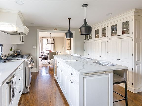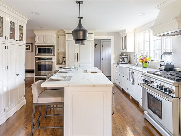 Exceptional, renovated, move-in ready storybook Tudor on a quiet street in sought-after West Newton Hill. This meticulously maintained residence spans 3,275 SF, seamlessly blending modern luxury with timeless elegance.The main level boasts a spacious living area, family room, dining room, powder room, and an updated kitchen flooded with natural light. The well-appointed kitchen is a cook’s dream, equipped with high-end appliances, custom cabinetry, and a center island.The home offers three generously sized bedrooms, each providing comfort and privacy. The primary suite features a luxurious en-suite bathroom and walk-in closet. Finished basement provides flexible space, including a wet bar, gym, playroom, and a full bath, potentially convertible into a fourth bedroom.The exterior is fenced-in and has a beautifully landscaped yard, with two bluestone patios, and a 2-car attached garage w/ direct entry to mudroom and kitchen. Centrally located in the heart of West Newton Hill.