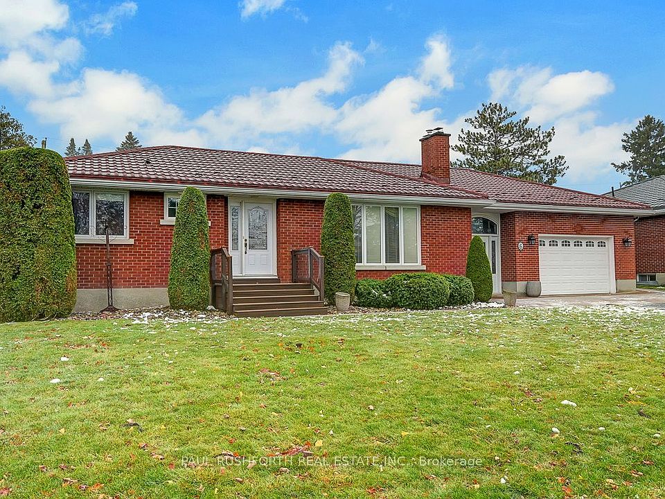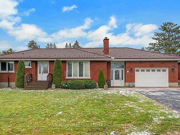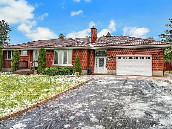Welcome to 6 Roundhay in family-friendly Manordale, Nepean. This extremely well-maintained and thoughtfully enlarged 2+1 bedroom bungalow is sure to impress. Energy efficiency is a key feature, thanks to the newer heat pump (2023). The main level features gleaming hardwood flooring throughout the principal living areas and bedrooms. The original 3-bedroom layout was redesigned to create a spacious primary suite. The bright, functional kitchen offers stainless steel appliances (2023), granite countertops with an undermount sink, ample pantry storage, and a comfortable breakfast area. Just off the kitchen is a cozy den with a walk-out to the beautifully landscaped backyard. The main floor also includes a well-appointed 3-piece bathroom and an inviting living room complete with a gas fireplace. The expanded lower level provides exceptional additional living space, including a large family room, wet bar area, 3-piece bathroom, a 3rd bedroom, an oversized laundry/workshop area, and a cold room. The lower level was enlarged as part of the extension added when the spacious double garage with inside entry was built. Situated on a generous 78' x 100' lot, the property features a high double garage with abundant storage, attractive interlock that wraps around the home, and two backyard sheds-one being a large, two-storey structure on its own concrete pad. The layout of the home also lends itself well to future SDU development, ideal for multi-generational living or rental potential. Major updates: Steel roof (2015) with transferable 55-year warranty, Heat Pump/AC & Hot Water Tank (2023), Appliances (2023), Washer/Dryer (2015). Some photos have been virtually staged.