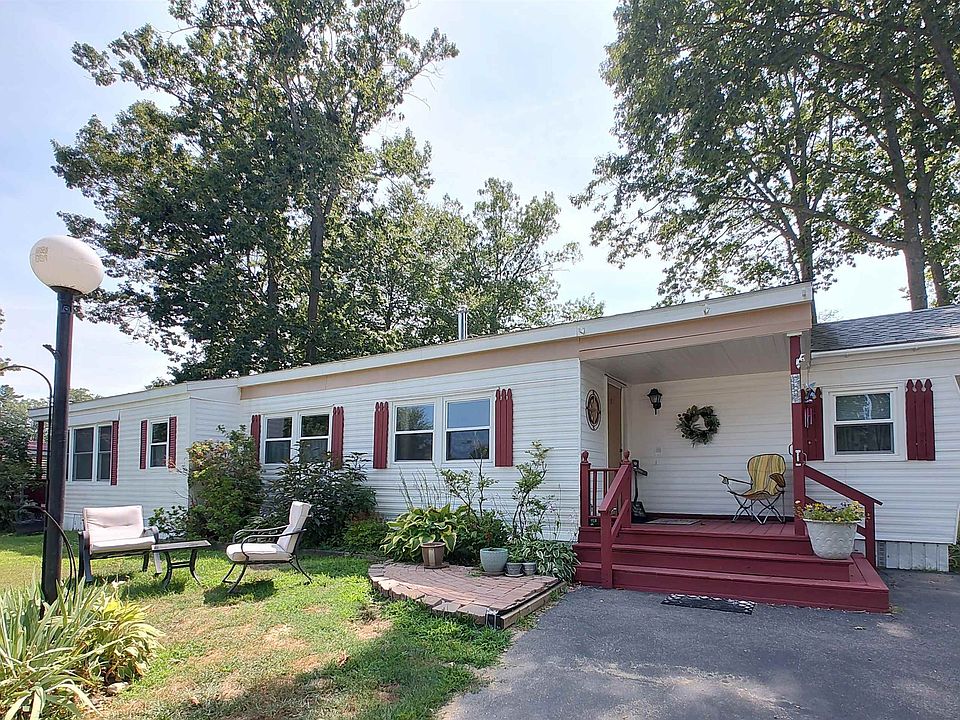 This charming home offers comfortable living in a well-managed community, at the south end of Rochester. Enjoy an affordable home option and avoid the stress of renting. Step into an inviting space featuring an open-concept living room, dining room, and kitchen, perfect for entertaining or relaxing evenings at home. The kitchen boasts updated appliances, ample counter space, and abundant cabinetry. There are plenty of replacement windows throughout the home that flood the space with natural light. You'll find a generous primary bedroom next to the full bathroom and a second bedroom with an attached half-bath, convenient for guests. Add a bonus room that, with the addition of heat, may be used as a third bedroom, and another spare room that could make a great office, craft or play area. Enjoy the outdoors on your covered front porch, perfect for relaxing, or on the side deck which offers space for entertaining or simply unwinding. A large shed provides ample storage for your outdoor essentials. Enjoy the park's amenities; basketball courts, a playground, a duck pond with gazebo, and a clubhouse. Lot rent includes trash and sewer costs, road maintenance and snow removal for the roads, and use of all community facilities. On-site management ensures a smooth and enjoyable living experience. Don't miss this opportunity to own a well-maintained & affordable home in a great location. One dog is welcome, see rules for restrictions. Seller seeking suitable housing.