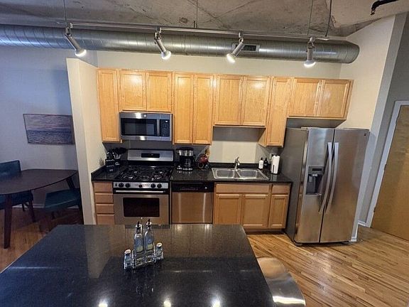 Prime Location, West Loop 2 bedroom loft unit with oversized balcony and parking garage spot! This unit features an open kitchen with island seating, granite countertops, stainless steel appliances, in unit laundry room, open living room with fireplace. Secured building features a doorman. Easy access to CTA and expressway, I-290 & 90/94. Close proximity to Fulton Market, Skinner Park, United Center and so much more!