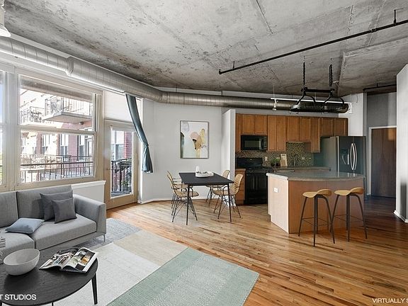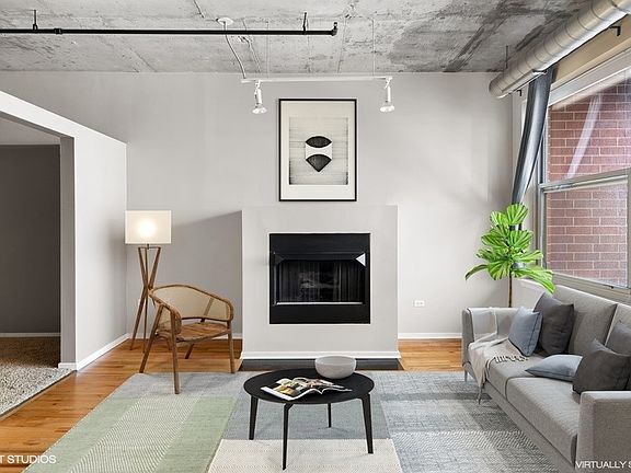PERFECT 2 BED 1 BATH LOFT IN THE HEART OF THE WEST LOOP. HARDWOOD FLOORS THROUGHOUT LIVING SPACE. THIS WEST FACING UNIT OFFERS AN OPEN LIVING FLOOR PLAN, BALCONY, FIREPLACE, WALK-IN IN LAUNDRY ROOM. LARGE MASTER WITH GREAT CLOSET SPACE. 2ND BEDROOM OPEN TO THE LIVING SPACE. GARAGE PARKING INCLUDED IN RENT.