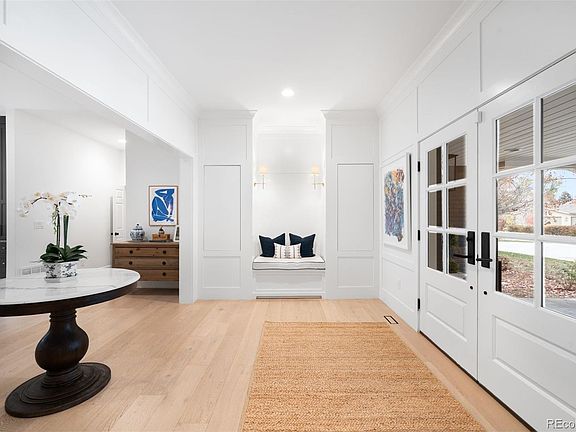 Set amongst a canopy of trees on one of the most coveted, private streets in Old Cherry Hills, 6 South Lane was thoughtfully reimagined and exquisitely renovated by the current owners. This ranch-style residence offers over 7,000 square feet of timeless architecture and refined elegance, privately nestled on nearly an acre. Designed around the central courtyard, the living, dining, and kitchen areas connect through expansive French doors for seamless indoor-outdoor flow. Outside, a full outdoor kitchen, fire pit, and heated pergola with mechanized louvers invite year-round al fresco living and dining. The gourmet kitchen dazzles with rift-sawn white oak cabinetry, natural quartzite countertops, Wolf & Thermador appliances, and a walk-in pantry featuring a built-in Miele coffee station. The living room is anchored by a striking Lapis stone fireplace and grand bay window overlooking the grounds. The gathering den features a design-forward wet bar and custom built-ins, while the adjacent private office with a fireplace inspires the most discerning eye. The primary suite is a serene retreat with a cozy fireplace, custom walk-in closet, and spa-inspired bath featuring a frameless glass shower, soaking tub, and dual vanities. Four additional ensuite bedrooms surround a central lounge, ensuring comfort and privacy for family and guests. The lower level impresses with a spacious media and recreation room, exercise studio, bright craft room with built-in cabinetry, and over 900 square feet of organized storage. Surrounded by mature trees and manicured gardens, the property’s multiple outdoor spaces evoke a private resort atmosphere. A four-car garage with an oversized three-car bay and separate golf cart or workshop area enhances versatility. Moments from Cherry Hills Village amenities and within the renowned Cherry Creek School District, this exceptional home embodies effortless main-floor living and Colorado luxury at its finest.
