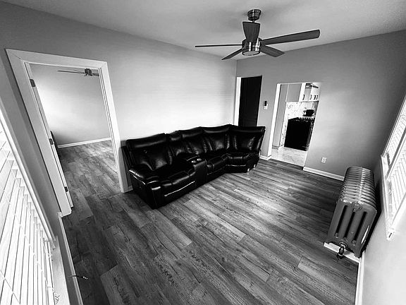 AC, Refrigerator, Range, Dishwasher, Microwave, Ceiling fans in bedroom and living room.