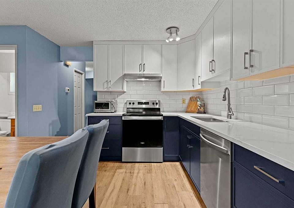 Renovated kitchenNew cabinetryQuartz countertopsUpdated backsplashNew stainless steel appliancesConvenient main-floor laundry areaGreat closet storage