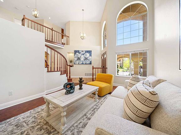 Revel in the grandeur of a soaring living room ceiling, filled with natural light for a bright and airy atmosphere