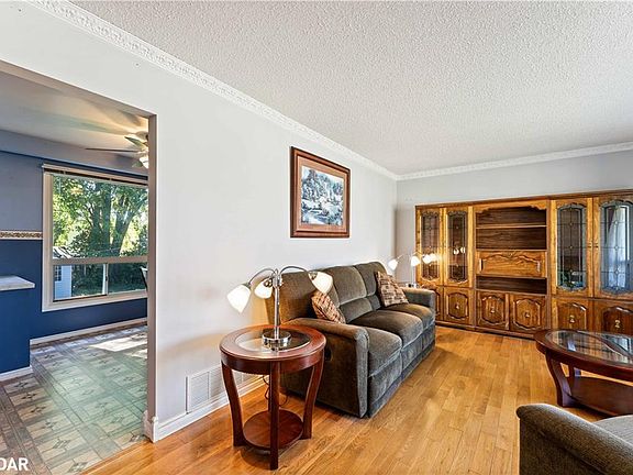 Charming family home in a quiet, mature neighbourhood. Lovingly maintained by the same family for many years, this home offers space, comfort, and thoughtful updates throughout. The inviting eat-in kitchen and bright living room welcome natural light, while the rest of the main floor features three bedrooms and a full bathroom updated in 2014. The finished basement extends your living space with a generous family room and cozy gas fireplace, plus a fourth bedroom, office, spacious laundry area with plenty of storage, and a cold room. Step outside to a large fenced yard—perfect for family gatherings and summer BBQs. Enjoy a composite deck, gazebo, and two garden sheds, creating your ideal backyard retreat. Notable Updates: driveway (2016), roof (2010), furnace (2013), electrical (2013), newer basement windows (2013), and eavestroughs with leaf guard (2019). Located within walking distance to schools and town amenities, and just minutes to Base Borden, Alliston, and Barrie, this is a rare opportunity to own a well-cared-for home in a sought-after location—ready for your next chapter!