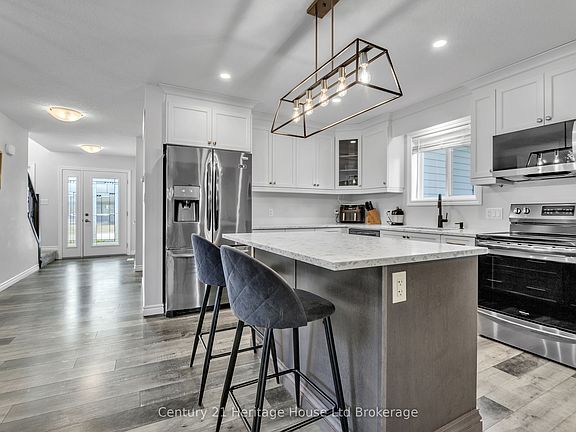 Welcome to this modern 2019 custom-built home, thoughtfully designed with barrier-free accessibility. Tucked away on a quiet cul-de-sac in a desirable, family-friendly neighbourhood, this home combines comfort, functionality, and style. The open-concept main floor features a bright kitchen with quartz countertops, seamlessly flowing into the living room with walk-out access to a covered rear deck, ideal for year-round enjoyment. The fully fenced backyard offers plenty of space for children, pets, or gardening. Upstairs, the spacious primary suite includes a large walk-in closet and private access to a Jack & Jill 4-piece bathroom. Two additional generously sized bedrooms and the convenience of second-floor laundry make everyday living simple and efficient. Accessibility Highlight: The main floor was custom designed for handicap accessibility, featuring a bedroom with wide doorways and a 3-piece accessible bathroom complete with an oversized roll-in shower. This layout provides true wheelchair-friendly living perfect for in-laws, multi-generational families, or anyone seeking single-level convenience. The finished lower level offers a generous rec room, while the attached 2-car garage and paved driveway provide ample parking. Practical upgrades include on-demand hot water, gas BBQ hookup, and modern finishes throughout making this home fully move-in ready. With flexible closing available, 6 Sandy Court is the perfect blend of modern living and accessible design.