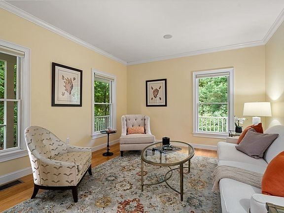This Captivating Colonial takes center stage in a small enclave of privately sited homes. The welcoming front porch has timeless appeal, and the interior spaces are compelling - filled with warmth and character! The thoughtfully designed floor plan showcases on the main level an exquisite living room with a French door for privacy, an elegant dining room with adjoining butler's pantry, expansive designer white kitchen with a spacious granite island open to the stunning two-story fireplaced family room and adjoining screened porch. Tucked backed on this level is a private office/guest suite option. The second level features a serene primary suite with a sitting area and luxury bath plus three bedrooms with baths with closets galore. The impressive lower level with high ceilings has a huge game room with an exercise area on one end and a fireplaced relaxing area at the other end, a spacious playroom and bonus room. This home has it all! Easy access to commuter rail and all convenience.