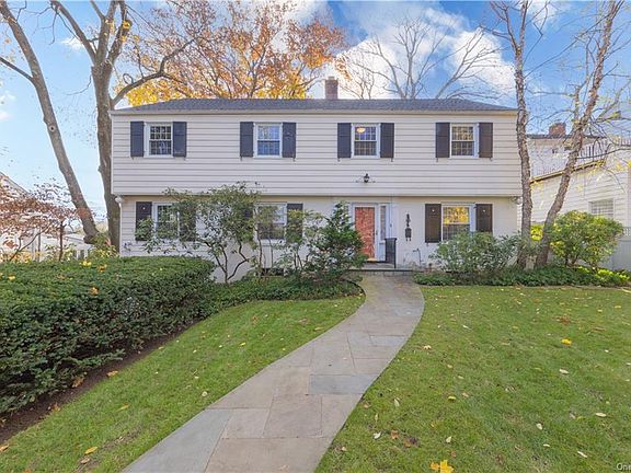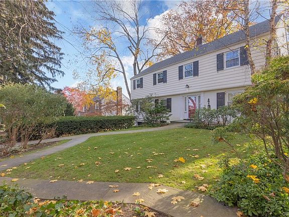 Welcome to Strathmore, Yonkers with a Scarsdale PO. This center hall colonial has been well cared for in the 40 years of same ownership! Beautifully landscaped with new front walkway and back patio. Terrific layout with lots of surprises. Large living room with wood burning fireplace, formal dining room, large family room. Upstairs offers 4 bedroooms , 2 of which are en suites and a home office. 3 zone heating plus central air. The basement has a finished room with heat and separate entrance. Access to gargae is through basement. Perfect private backyard with mature trees and perennials'.