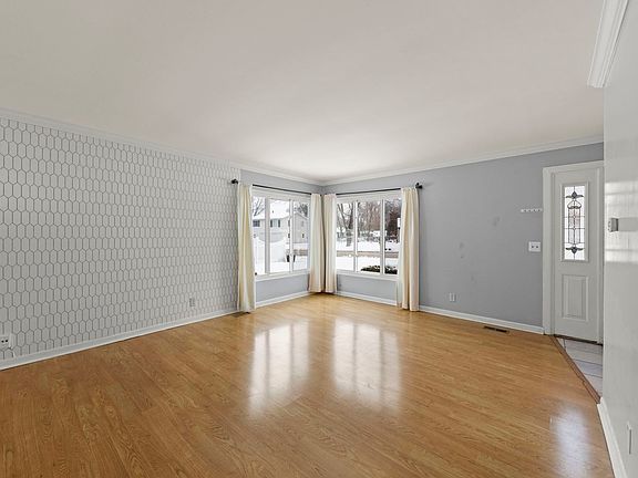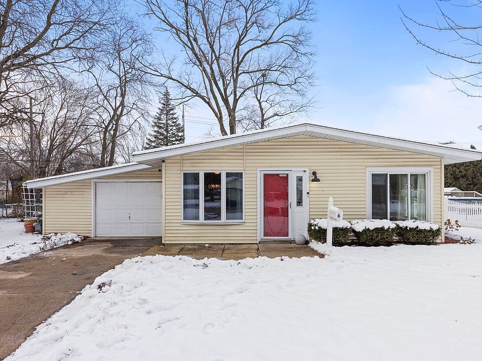 Gleaming floors, neutral paint and white trimwork await you in this charming ranch home. The tiled entryway opens to the living room featuring 2 large banks of casement windows to let the daylight flood in. The WOW! kitchen has been beautifully updated with stainless steel appliances (including double oven), granite countertops with tile backsplash, abundant custom staggered-height maple cabinetry, with glass front accents, lovely custom cut-glass door to the garage and a spacious dining area with bow window and updated lighting. The 3 bedrooms have hardwood floors, terrific closet space and easy access to the adjacent hall bath with pedestal sink. The attached, oversized 1-car garage offers you tons of storage. Enjoy the huge yard with mature trees from your private patio! Updated mechanicals include water heater (2019), roof (2017), windows (2015) and furnace/AC (2015). The attic is well-insulated (additional 8") to help conserve energy! Convenient location is just blocks to Boulder Hill Elementary School and easy to shopping and dining! Don't miss this one!