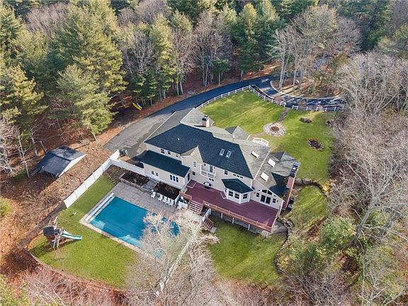 Welcome to exclusive and private Deer Run Estates. One of a kind, custom built one owner, remote entrance gated home on 2 acres surrounded by 40 acres of conservatory land, great for hiking enthusiasts and home is on end of cul-de-sac. The beautiful home showcases 4 beds, 5 1/2 baths, 4551 living square feet with an additional 1163 square feet in lower level with potential in-law, gym area, office and family room. Other features are 3 floors of laundry facilities which includes Master bedroom laundry room w/built in ironing board cabinet, central vac, French drains, IPE exotic South American Brazilian hardwoods, 2 fireplaces, heated 3 1/2 car garage, multiple offices for remote work at home scenarios, playroom off bedrooms, over sized 18 x 40 Roman on each end in-ground pool with electric retractable liner, sunroom, 20 zone irrigation system fed by a well, exterior wood burning furnace with oil burner back up. This private home is an exceptional find in a neighborhood with underground utilities, 24 hour video neighborhood surveillance. Close to all amenities yet very private, 5 minutes to Route 95 and 15 minutes to TF Green Airport. Reach out for a private showing!