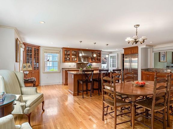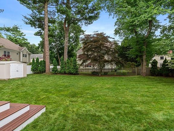 Classic center entrance colonial expanded w/ a very open floor plan. Enjoy this kitchen w/oversized island seating for 4, great storage, entertainment area for serving food or setting up a bar, large dining table plus sitting area. The kitchen is the heart of this home which connects to the family room w/ another space for bar seating plus outdoor access. The living room is a great entertaining space. Room for two seating areas as well as space for a grand piano. Fireplace is flanked by built-ins. First floor bedroom w/ full bath gives provides flexible space for guest bed or potential first floor master. Mudroom & large storage area complete first floor. Large master bedroom w/ vaulted ceiling, double closets & bath. 2 additional beds on 2nd floor including one bed w/ walk-in closet & hall bath. Lower level w/ 2 finished rooms plus plenty of workshop space & storage. incredible flat yard! Close to Fells Market. Take the town wooded path to center of Wellesley less than 1 mile.
