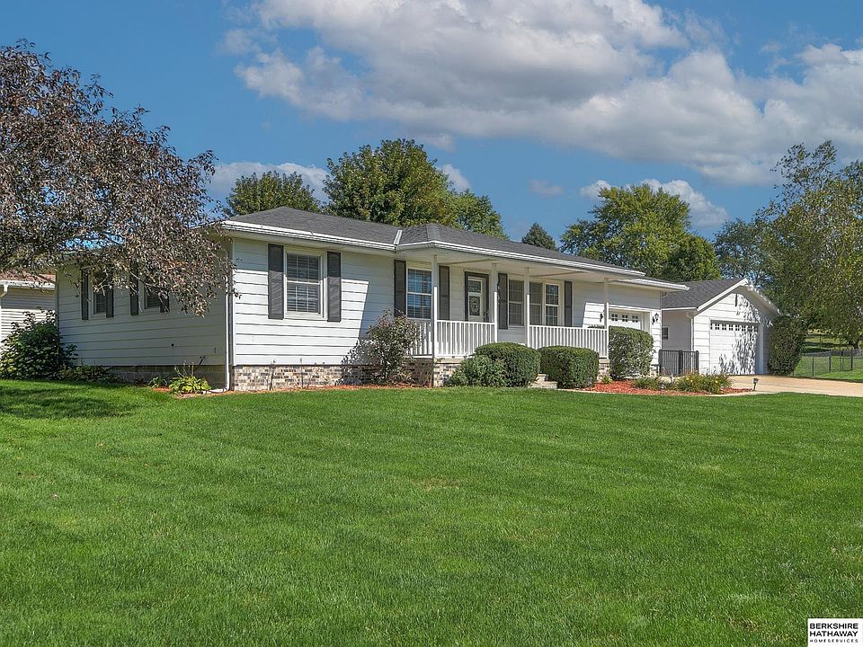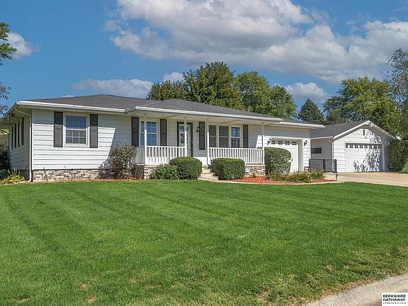 What a find! Updated Ranch home with a little over 1/2 acre in town just outside of Omaha. Mechanics dream home with 2 detached garages. The two car garage even has it's own furnace! House features a nicely updated kitchen with newer cabinets, counter tops and gorgeous backsplash. Stainless steel appliances stay. Large master bedroom on the main floor could be converted back to 2 bedrooms for 3 bedrooms on the main floor. Main floor laundry, Vinyl windows, fenced yard, wood floors and newer carpet. Large family room in basement and non conforming room.
