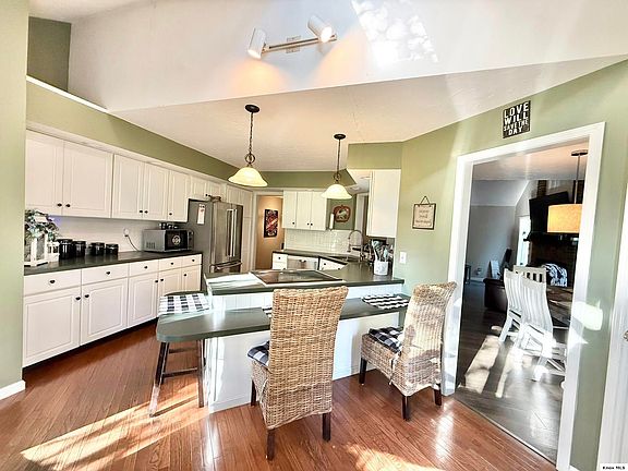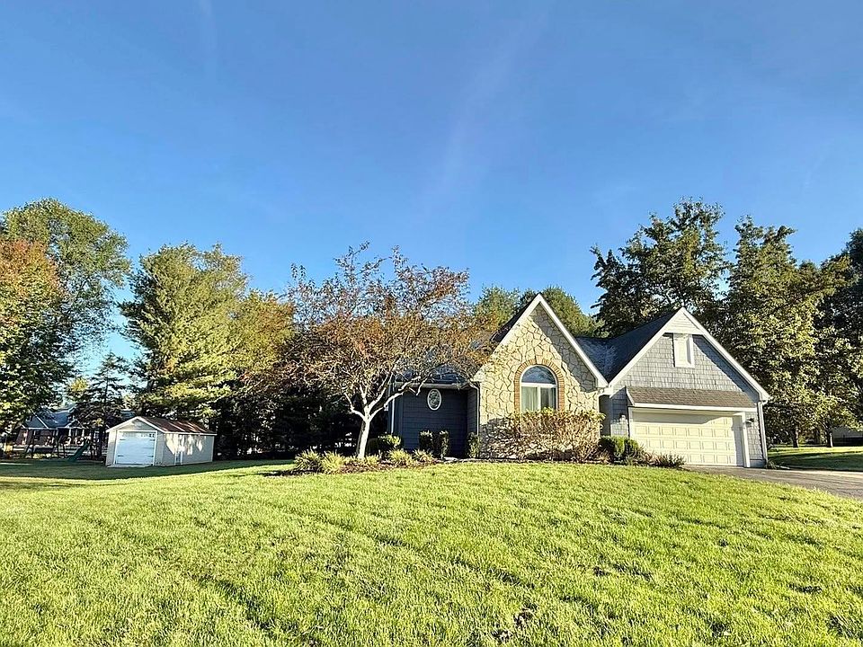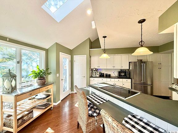 6 Sharon Drive. The welcoming entryway opens to a well-appointed kitchen featuring abundant cabinetry, stainless-steel appliances, skylights, ample counter space, and an eat-in area—ideal for entertaining or everyday living. A more formal dining area connects seamlessly to the cozy living room that features a gas fireplace, providing an inviting open concept feel. The main floor includes two guest bedrooms and a full bath, along with a primary suite boasting dual vanities, a large walk-in shower, and a walk-in closet for added luxury. A spiral staircase leads to a versatile loft area, perfect for a home office, family room, or potential fourth bedroom. Adjacent to the loft is 400–500 sq ft of unfinished attic space above the garage, offering excellent expansion potential. The lower level features a large family room ideal for gatherings, plus three additional rooms currently used for storage, exercise, and office space—each easily convertible to finished living area. A multipurpose laundry/utility room adds convenience. Additional features include a heated two-car garage, invisible fence, and an inviting patio overlooking the peaceful oversized double lot. This home offers modern updates, generous living spaces, and endless possibilities—all in a prime Mount Vernon location. Truly a one-of-a-kind property!