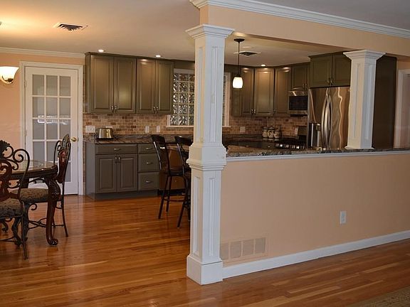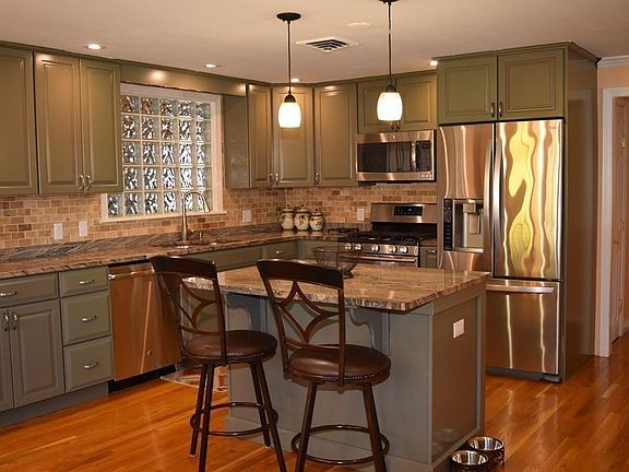 Quit Street and great neighbors. This home offers an open floor plan with a large living room with fireplace, dining area, remodeled kitchen with granite countertop, solid cabinets, Oak flooring, recessed LED lighting, new windows, new roof, new deck. 5 bedrooms, 3 bath, den/family room on 1st level. Bright and sunny living space with Bay window, open concept, eat-in kitchen, sun room with hardwood floors and pine ceiling that opens to deck and private fenced in backyard. Quiet street.. Walk to park, close to Wegman's, Shaws, Target, shopping, perfect for commuter with access to highway and walking distance to commuter rail. Convenient to highway, 5 minute walk to Canton Junction.