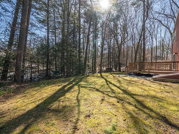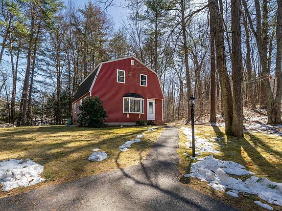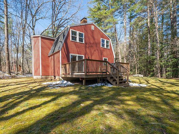 It's so charming! Located in a country setting in desirable East Derry, you'll love that this delightful home was architecturally designed to resemble a barn. Freshly painted throughout, with brand new carpet and recently replaced siding and windows, you are free to move right in. As you enter through the substantial mudroom, the bright and inviting living room bids you to come in and relax by the wood burning fireplace in the cooler months, while in the warmer months, you'll feel summoned through the sliding glass doors to enjoy the massive deck, which was recently entirely replaced and upgraded with composite flooring. Surrounded by mature trees, the deck and the entire yard affords a great deal of privacy. Back indoors, stainless steel appliances compliment the attractive and plentiful cabinetry and counterspace in the kitchen, which is open to the daylight-filled dining area streaming in from the large bay window. Down the hall is a sought-after, spacious first floor bedroom which is conveniently adjacent to a roomy, updated full bath. At the top of the 2nd floor stairs, an open space, presently used as a sitting area, provides the potential for so many other uses too: office, playroom, reading nook, crafting, whatever you decide! This area includes an extra closet, and leads to the generous-sized primary bedroom with ample space for your furniture, a second large bedroom, and a second large, open, and light-filled full bath with tile floor. And it's generator ready too!
