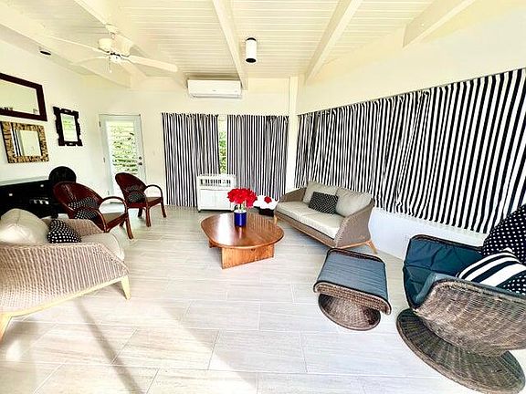 Available Nov 19 1 BD 1BA waterfront cottage with large lawn between you and the Caribbean Sea. Bright , airy and furnished for comfort. AC and washer dryer. Tenant responsible for wapa and water, internet and once monthly housekeeping is included.
