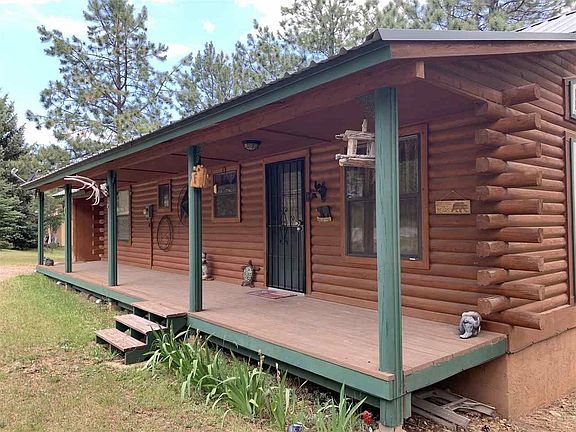 Single level log home on .817 acres. This mountain cabin has an open floor plan with a wall of windows viewing manicured & forested grounds. Kitchen has good counter space, pantry & utility closet. Master suite has 3/4 bath, walk in close and fantastic french doors opening to back deck to view wildlife. 2nd bedroom has private door into large hall bath. Back deck has privacy and pet yard - dog run. Minutes walk to the new pool and tennis courts. Locked storage - workshop in attached carport. A must see!!