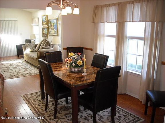 This Princeton Commons Abbington model is tastefully appointed and move in ready! Spacious floor plan features ceramic tile entrance foyer, large living room, oversized dining room and family room with upgraded wood floors, leading to a Florida room with rear yard view. The eat in kitchen boasts granite counter tops, newer appliances and a skylight. There are two generous sized bedrooms, master with en suite bath. Additional extras include sky lights in family room, garage with direct entry, new attic fan, window treatments, new roof and appliances in 2014.