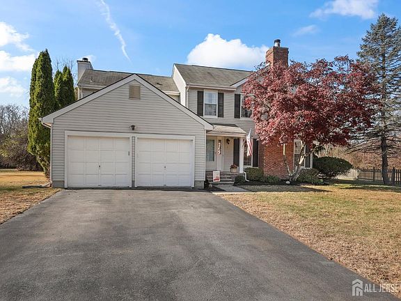 A charming center hall colonial home situated in a quiet neighborhood on a cul-de-sac awaits. Inside, find an updated kitchen complete with ample white cabinetry, granite countertops, stone backsplash and drop lighting which all opens to both the dining room and deck for easy entertaining. Plenty of living space can be found with a formal living room and cozy family room, both with wood-burning fireplaces. Gorgeous hardwood flooring runs through the living room and dining room. Upstairs, find your spacious bedrooms, including a master suite complete with a formal sitting area, walk-in closet and bathroom with separate vanity space. Additional bonuses include the laundry room on the main floor, multiple coat closet/pantry opportunities, finished partial basement and 2-car garage, updated windows and routinely serviced systems. Outside, find a bricked front porch, flat yard, shed, deck with awning and artful landscaping, all backing to peaceful woods. This truly is a place to call home.