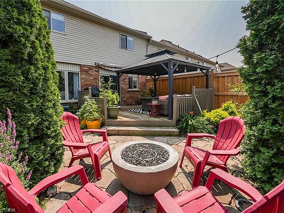 STYLISH LIVING IN THE HEART OF BINBROOK ... This beautifully maintained freehold 2-storey townhome in nestled at 6 Southbrook Drive in a prime Binbrook location. Step through the inviting double-door entry from the covered front porch into a stylish, bright and welcoming main floor featuring durable vinyl flooring throughout. The functional, OPEN CONCEPT layout includes a cozy living room, anchored by a corner gas fireplace, and opens to a spacious kitchen with white cabinetry and centre breakfast bar island with seating - perfect for casual meals or entertaining. WALK OUT through patio doors off the dining area to the outside and enjoy a thoughtfully landscaped, low-maintenance backyard complete with a large deck, gazebo, and tranquil water feature - perfect for relaxing or entertaining without the hassle of grass upkeep. A 2-pc powder room and inside access to the attached double garage finishes off the main level. UPSTAIRS, you'll find three generous bedrooms, including a primary suite with a 3-pc ensuite featuring a walk-in shower, and a second 4-pc bathroom. The FULLY FINISHED BASEMENT extends your living area with a carpeted recreation room, plenty of storage, laundry, and endless possibilities for use. Offering style, functionality, and convenient side-by-side parking for two, this property is the perfect blend of comfort and practicality. 6 Southbrook Drive delivers exceptional value and charm in one of Binbrook's most sought-after neighbourhoods. Walking distance to schools, parks, and just minutes to town and all amenities. CLICK ON MULTIMEDIA for video tour, drone photos & more.