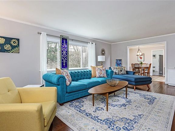 Gracious 3-bedroom home, lives like a spacious 4, nestled on 1+ acre in private, wooded setting at end of quiet cul-de-sac. Presented in immaculate condition with an inviting, flexible layout that accommodates a variety of lifestyles. Beautifully maintained interior features oak floors, classic millwork, 2 FPLs, abundant natural light & effortless transition between its many rooms. Spacious living rm adjoins formal dining rm for easy entertaining. Kitchen w butcher block counters, stainless steel appliances & door to rear deck overlooking large backyard. Cozy den/library with tongue & groove pine paneling & built-ins, plus fam rm/office with stone floor, full bath & study/guest rm also on main level. Generous master bedroom, 2 additional well-sized bedrooms & renovated full bath on 2nd level. Very large recreation room w porcelain tile floor on finished walk-out lower level. New windows. Desirable location walk to Chappaqua Crossing, Whole Foods, Lifetime Fitness & Horace Greeley HS.