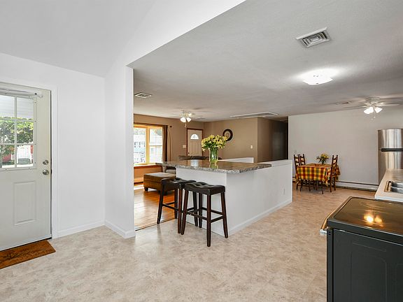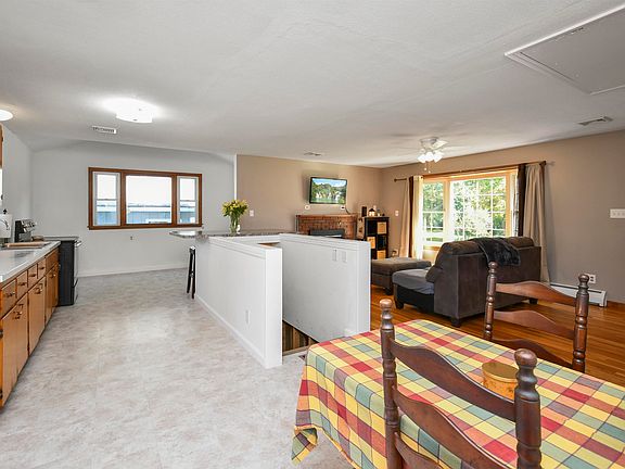 The possibilities are endless when it comes to this sprawling ranch home with detached garage on an amazing 1.028 cleared lot. Open concept first floor living with eat in kitchen and living room with fireplace and hardwood floors. Down the hall there are 3 bedrooms with hardwood and an updated full bath. Towards the back on the home is a private au pair suite with den, guestroom and a full bath with unfinished walk in closet. Massive lower level with laundry, plenty of storage and a finished area with a full bath, kitchenette and great room. There's a "dog house" leading to the back yard used as a separate entrance with its own driveway area. Detached 2 stall garage was once heated and has it's own sub panel and new garage doors. There are 2 other out buildings with one currently used as a chicken coup and separate driveway area for easy access to the back of the lot. Updates include well pump, Buderus heating system, 200amp electric, radon air mitigation, kitchen flooring, freshly painted rooms and a newer back deck and front entry. Great location close to area shopping and highway access to 495. Showings begin on Wednesday 10/11/23.