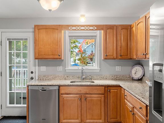 This phenomenal home has gorgeous curb appeal and is centrally located for convenience to commuter routes, schools and shopping. Covered front porch and large rear deck perfect for entertaining. Large flat fenced yard. First floor boasts front to back living room with wood flooring. Dining room with wood floors open to the kitchen which is modern and has great cabinet storage, granite counters and stainless steel appliances and a half bath. Central air. Updated gas hot water tank. Second floor has two large bedrooms with multiple closets, and remodeled full bath with tile shower/ tub. And a small third bedroom with wood floors perfect for home office. This is an amazing turn key home that has been very well care for !