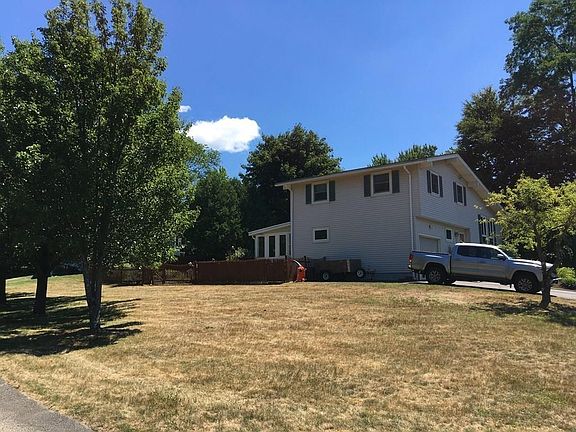 This three bedroom multi-level home has been meticulously maintained. The main level boasts of gleaming hardwood floors throughout, a recently updated kitchen, separate living room and dining room areas, Cathedral ceilings, a spacious and open floor plan that is perfect for entertaining. Upstairs you'll find three large bedrooms and a beautiful hardwood hallway. Your den includes a two sided wood fireplace, perfect for those cold New England Winters, that leads you to an attached three season porch overlooking your private, fenced in backyard. Partially finished basement is a perfect play area for the kids, or quiet home office for remote workers. Central A/C helps keep everyone stay cool on these hot Summer days. An attached wood deck, off the dining area, is perfect for grilling, and a detached backyard shed for storage, helps keep the garage neat and clean. This desirable neighborhood is minutes from shopping, 495/Mass Pike/95 and commuter rail.