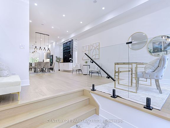 L.O.C.A.T.I.O.N. Spectacular Modern Home. Exterior Ultra Modern Aluminum Composite & fluted panels paired w Glass Railing. Security cameras all around with fully fenced backyard. Large Kitchen With High End Wifi Controlled Appliances, large island w Quartz Counter Top. Dining room w builtin Bar w Bar sink and glass shelves. Fully open concept overlooking living, dining kitchen office and family room. Glass Railings all around living office & stairs. 2 large patio doors opening up to sundeck. Quality Craftmanship, Materials With Meticulous Attention To Detail. Magnificent Master Includes Walk-In Closet, 7 Pc Ensuit w free standing jaccuzi, large shower with LED shower panels, double sink fireplace & w/o to large balcony w glass railing. All bedrooms w 4 pc ensuits, ample storage. another shared balcony w 2 bedrooms. Multi zoned HVAC system, central vacuum. Wifi controlled combo laundry w steamer, organized shelves in laundry room creates lot of storage space. Walkout 2 bedroom Basement with high ceiling roughin kitchen, 4 pc washroom. Large windows making it extra bright. Large Open concept Rec room making it a perfect party place. wifi controlled garage door. open from your phone. Steps To new Metrolink Subway line. **a must sell deal*