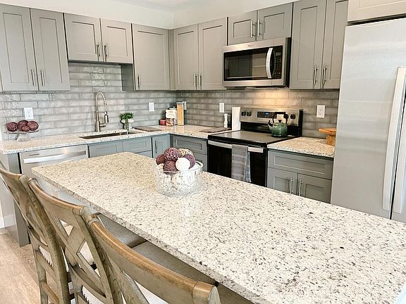 These stunning apartments (16 available) offer a private balcony, central air, central heat, tiled backsplash, granite countertops, stainless steel appliances, and in-unit laundry. The building also features off-street parking spaces.