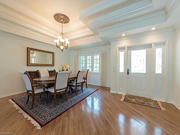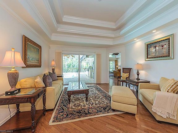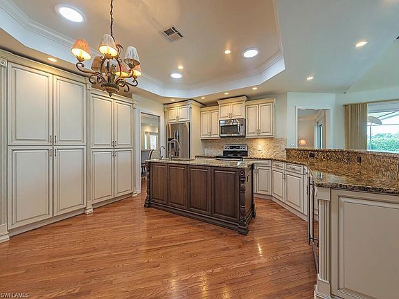H.15002 Fully renovated large pool home with private golf course and water views. One level living with raised ceilings and incredible molding detail throughout. Large formal entry with spacious dining and living areas. The eat in kitchen with breakfast bar has custom cabinets, granite countertops, and stainless appliances which opens up to the family room and screened lanai. Master bedroom has been re-designed to include a private home office, large master bathroom with separate tub and shower, dual sinks and a large walk in closet. Separate guest suite with new spa bathroom ensures guests may never leave. All windows are hurricane rated. The pool & spa were totally rebuilt and the screened lanai has been doubled in size, including a dog run and fire pit. New security & music intercom system were added. The tile roof was recently replaced, the exterior was painted in 2019 and both a/c units have been replaced. Wyndemere is a premium Country Club community with 27-holes of championship golf, tennis complex with 10 Har-Tru tennis courts, pickle ball and bocce courts, fitness center & spa, resort style pool, clubhouse, a variety of dining options and a full social calendar.