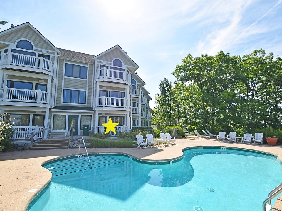 Stunning Lake Michigan & sunset views from the sought after Stony Brook Lodge in The Homestead. This first floor condo is mere steps to the pool, has one bedroom, one bathroom, excellent rental potential, and makes the ideal, low maintenance getaway. The Stony Brook Lodge has every modern amenity needed, including a no-stair entry, air conditioning, elevators, its own swimming pool with lake vistas, a workout room in the lower level of the building, and an in-building laundry facility with new Speed Queen machinery. Other attributes to note: new, high end sleeper sofa, new shower and shower door, new bedroom mattress, new water filtration system, new water heater, fresh paint throughout, and much more! The efficiency sized kitchen has everything one could need - a two burner cooktop, new dishwasher and microwave, refrigerator, and is stocked with needed pots, pans and dishes. A toaster oven would complete your baking needs! This condo is in fantastic condition. Located just two miles from downtown Glen Arbor and five miles from the Sleeping Bear Dunes, this wonderful, centralized location is sought after for those seeking a reasonably priced, turn-key property in Leelanau County. *Being sold furnished with very few exceptions*