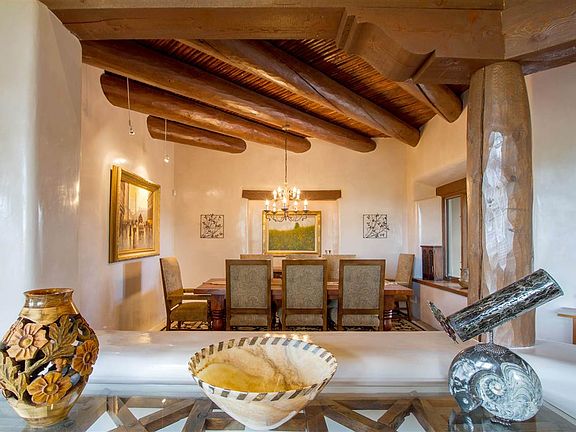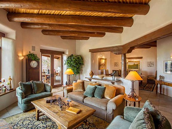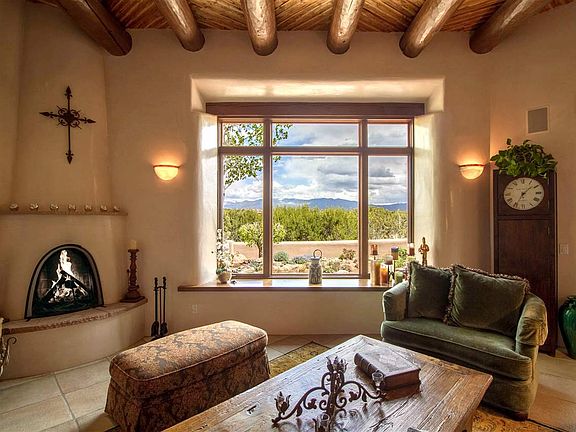 A truly sophisticated home with magnificent Sangre de Cristo views. Perfectly sited to capture radiant views, this home has everything you are looking for! Perfect floorplan with great separation of space. Three spacious bedrooms, all with views plus an additional office/study or den with built-in shelving and audio wiring for piping music throughout the house and portal. Incredible, high ceilings throughout with varied ceiling treatments, including vigas, latillas and beams, coved, and split cedar. Large windows help capture the views and environs which surround the house. Wonderful Estates I location with close proximity to town, yet private and rural feel. Gorgeous cook's kitchen with 6 burner Viking Range and stainless appliances, along with granite countertops and furniture quality cabinets. Phenomenal Eastside portal perfect for entertaining or just sipping your morning coffee watching the sunrise over the Sangre de Cristo Mountains. Beautifully landscaped, completely walled and gated along with drip irrigation. There is an additional Southwest facing portal for a secluded, walled and gated, more private outdoor area. This home shows like new and is an incredible value in the area and should not be missed.
