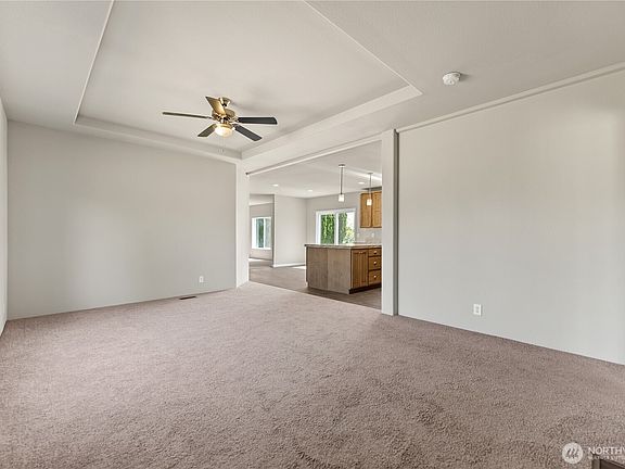 Built in 2022 this 3 bedroom, 2 bath manufactured home is on almost an acre! This never lived in property features a spacious floor plan with a large living room and coffered ceiling, separate family room with electric fireplace and a stunning kitchen with oversized island, walk in pantry and adjacent dining area. The primary suite includes a huge walk in closet and generous bathroom with extra storage. Laundry room with backyard access, 30-amp RV hookup and ample space to add a shop or garage. Enjoy irrigation water through OID. Room to grow and make it your own - don't miss this one!