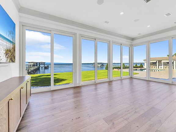 Welcome to 6 Sunset Beach Place, an extraordinary bay front estate in the gated community of Sunset Beach within Bluewater Bay. Set on nearly an acre of land with 151 feet of pristine waterfront overlooking beautiful Choctawhatchee Bay, this 6 bedroom, 6.5 bath dream home offers 6,424 square feet of luxury living. Every detail has been professionally designed and no expense spared with over $1.8 million in thoughtful renovations blending timeless architecture with modern sophistication.Almost every room provides gorgeous panoramic views of the bay. This home features new engineered hardwood and designer tile flooring, 12-foot ceilings on the first level and 10-foot ceilings on the second level, solid wood interior doors, arched openings, and plantation shutters throughout. The expansive open-concept layout includes a chef's kitchen with white oak cabinetry, marble countertops, Thermador professional appliances, an imported French oven, and a butler's pantry with custom built-ins and quartz accents. A coffee and wine bar and prep kitchen provide added convenience for entertaining.
