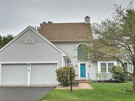 Lovely contemporary home in WOODGATE VIEWS ! Large sun filled living room with gas fireplace, cathedral ceilings and dining area surrounded by lots of windows that create a wonderful warm and comfortable space. Eat in kitchen with access to deck. First floor primary bedroom with bath and large shower. Spacious family room in lower level. Two guest rooms and loft area with bath on 2nd floor. Newer roof and Buderus furnace and Rinnai hot water heater. Central air and 2 car attached garage. Situated on a lovely cul-de-sac road with access to pool, clubhouse and tennis courts. Lawn maintenance and snow removal included in the QUARTERLY association fee of 675.00. Highly desirable area.
