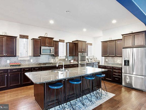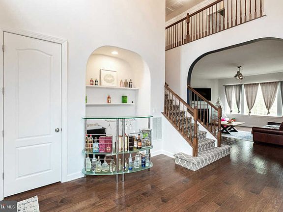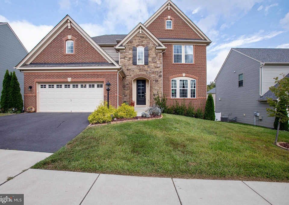 Welcome home to this stunning brick and stone front Colonial style home in sought after Colonial Forge. With 6 bedrooms, 4.5 bathrooms, and over 5,000 sq ft of space, this home has plenty of room for you and your family! Beautifully landscaped, with lush cypress trees on either side, and silverdust, purple palace coralbells, and foundational shrubs set in a flowering bed lining the walkway. Enter through the custom mosaic stained glass front door set in a wood frame, and into the spacious light and bright foyer with 16 foot high ceilings and a cage chandelier. Featuring hardwood floors, and rounded archways, this home is outfitted with recessed lighting and custom built details throughout. Enjoy scenic views and streams of light, courtesy of the large windows in the spacious living room, that also features a chrome finished dual fan chandelier light and a cozy gas fireplace with mantel. Overlooking the living room is the gourmet kitchen, featuring dark hardwood cabinets, granite countertops, and gray tile backsplash. Also features an extra long island with breakfast bar and a deep double sink and detachable faucet. All stainless steel appliances, including a double door oven, and triple door fridge with ice maker. Enjoy leisurely weekend breakfasts in the neighboring breakfast nook! Take a break outdoors through the French double doors and onto the upper level deck with steps leading to the concrete patio and firepit. Entertaining guests is a breeze in the formal dining room, featuring crown molding, wainscot chair railing, and a sparkling crystal drop chandelier. Main level also includes a powder room and a den - the perfect place for your very own home office! Walk up the grand, carpeted steps leading to the second floor, and unwind in the main bedroom suite featuring an en-suite bathroom with two full sized sink vanities flanking the soaking tub. Also includes a standing shower with tile walls, rain showerhead, and built in bench. Two other bedrooms on the top floor feature a Jack and Jill bathroom, with dual sink vanity and full size tub. The walkout basement features multiple spaces for recreation and entertaining, as well as a sixth bedroom and full bath - the perfect place for an in-law suite! Also features an extra wide driveway and a two car garage. Community amenities include taking a dip in the sparkling pool, and access to the playground and dog park. This home is conveniently located near multiple shopping and dining destinations with easy access to 1-95 and a commuter lot. Do not miss this one!